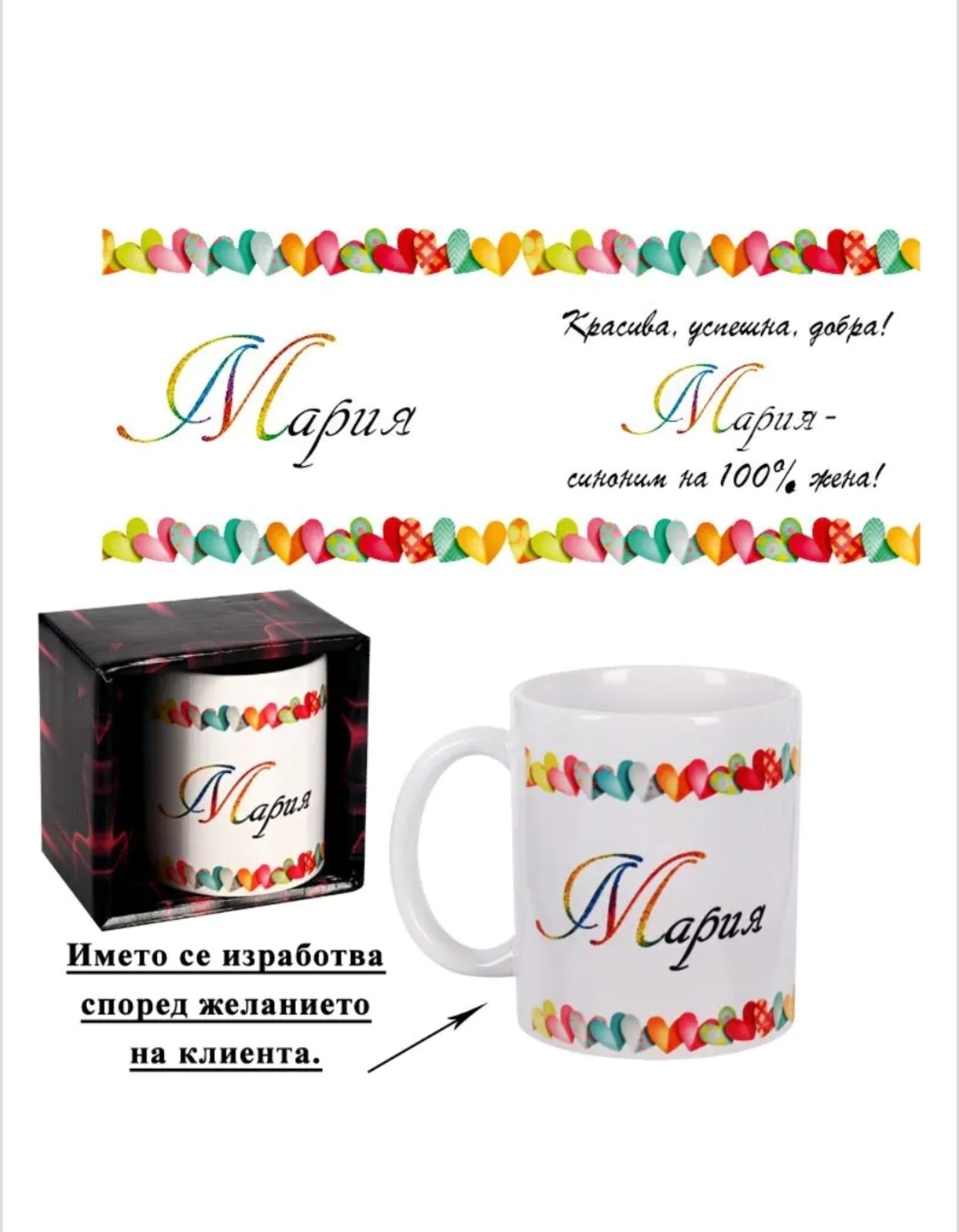 Коледна чаша "Сърца" (керамика)