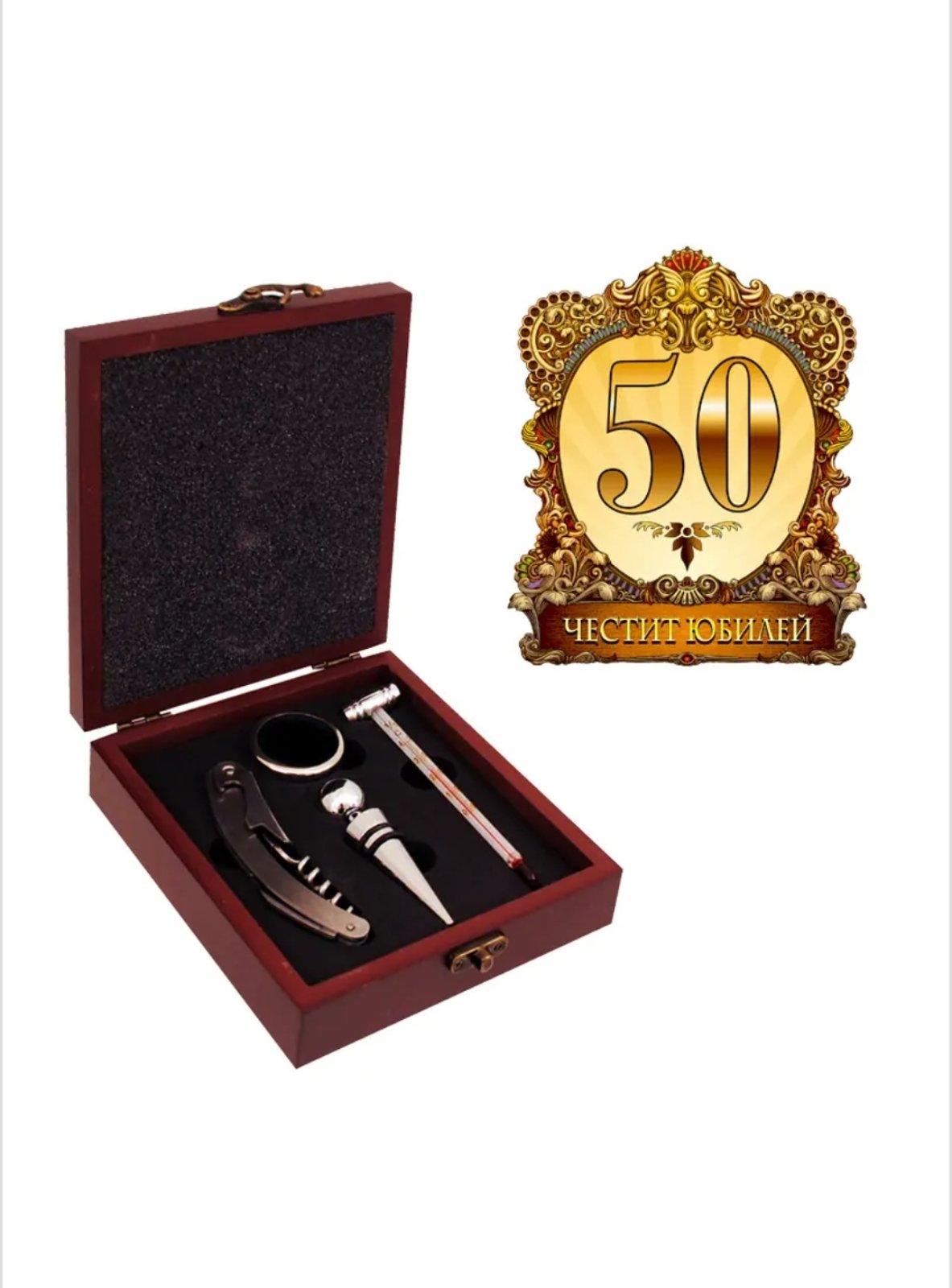 Аксесоари за вино "Честит Юбилей" в луксозна кутия