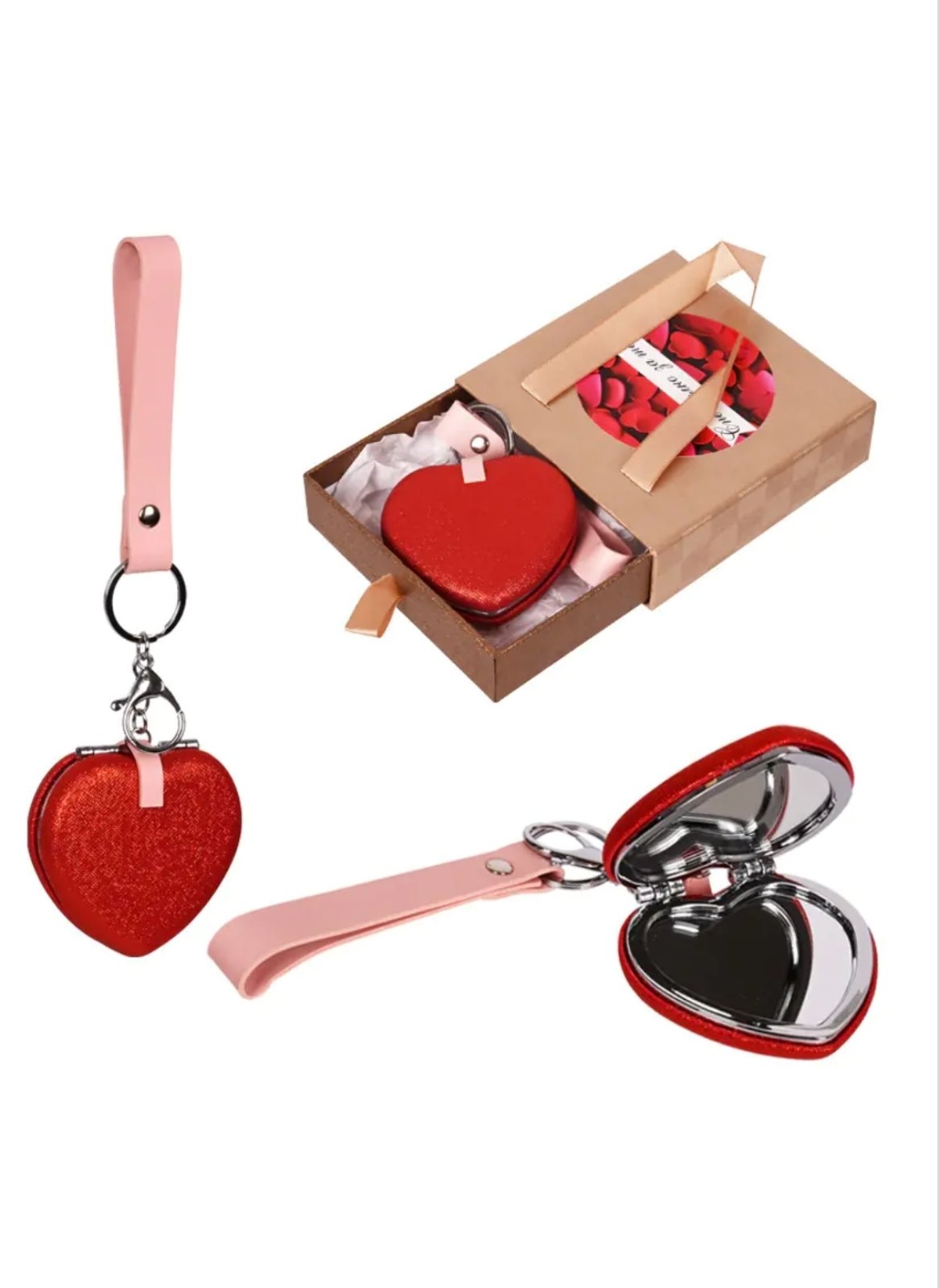 Луксозен ключодържател - огледало "Сърце" с кожена дръжка в подаръчна кутия