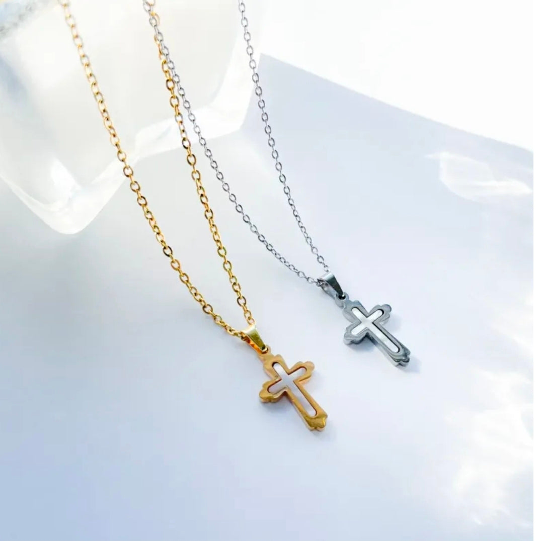 Нежни колиета с кръст с естествен седеф от медицинска стомана 316 L