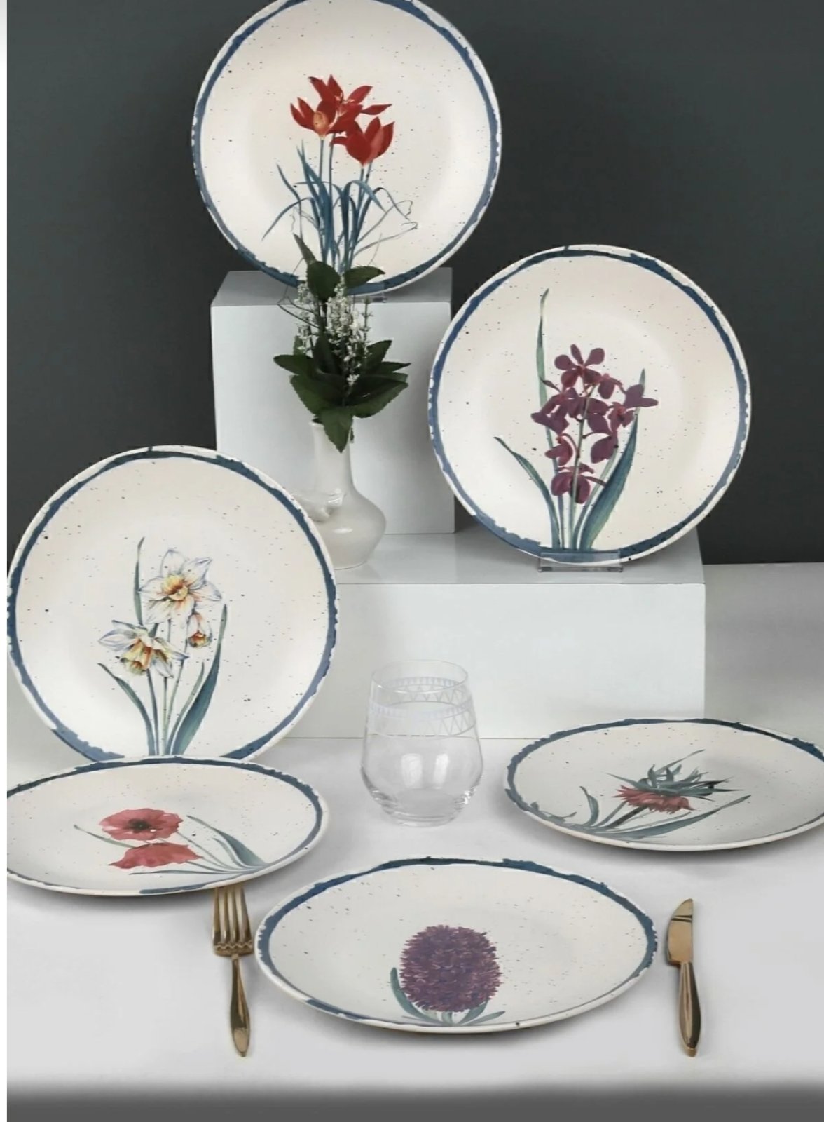 Сет от 6 бр чиний с анадолски дизайн "Цветя със син ринг"