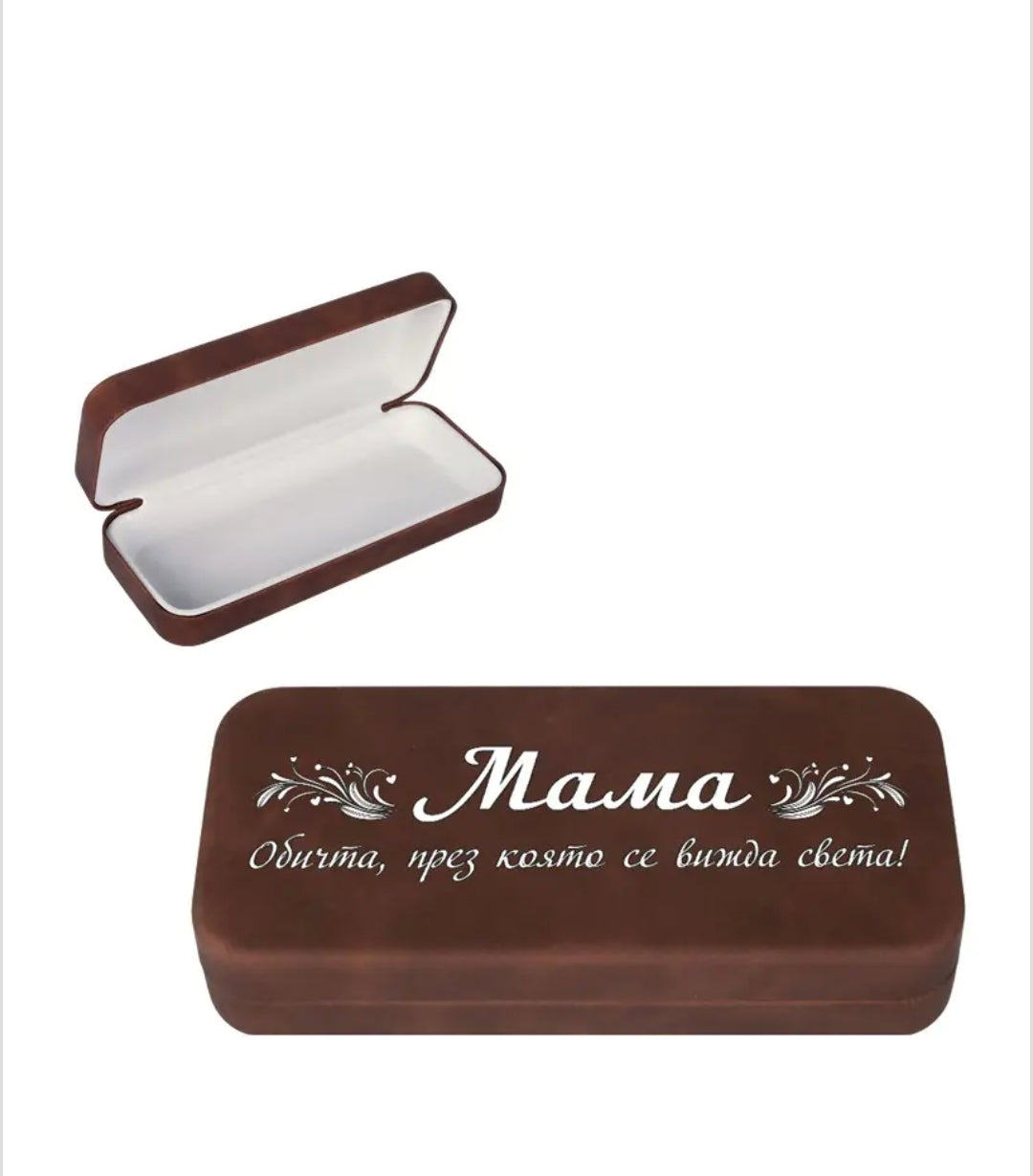 Твърд калъф за очила от кожа в кафяво "мама"